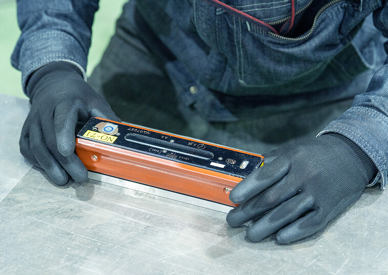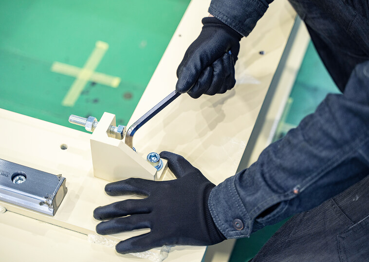 熟練工の手作業による精密な調整と品質を確保。構造体や部品に対して、塗装や防錆処理などの仕上げを行い、耐久性・美観・使用環境への適合性を確保します。