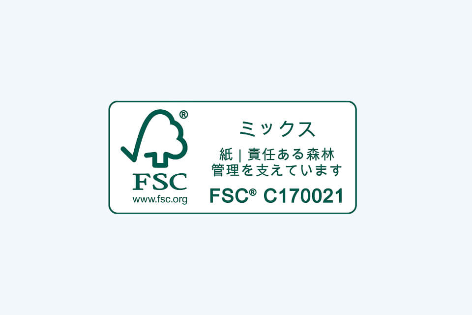 FSC®認証とは、森林が適切に管理され、違法伐採や環境破壊のリスクが排除された資源であることを証明する国際的な認証制度です。私たちはこの認証資材を選択することで、森林資源の持続可能な利用と生態系の保全に貢献しています。これからも環境に配慮した資材の活用を通して、持続可能な社会の実現に向けた取り組みを進めていきます。