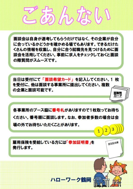 | 会場 | 鶴岡第2地方合同庁舎2階共用会議室 (ハローワーク鶴岡2階) |