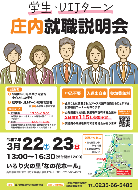 当社は、令和7年3月22日(土)・23日(日)にいろり火の里「なの花ホール」にて開催される『学生・UIJターン庄内就職説明会』に参加いたします。