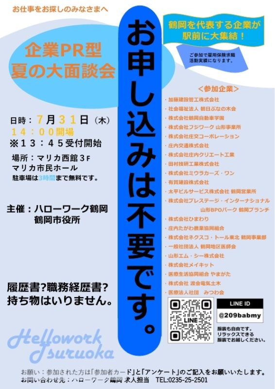 • 主催:ハローワーク鶴岡、鶴岡市役所
