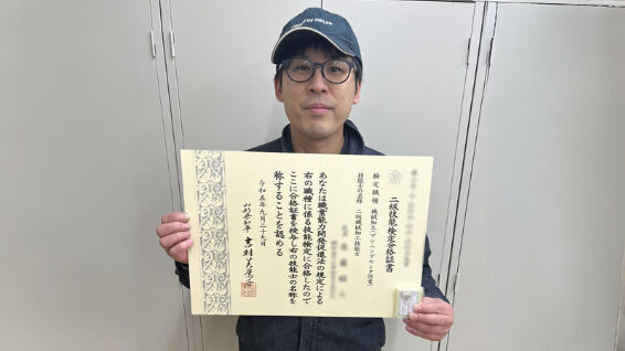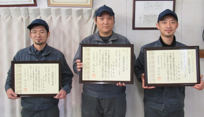 ㈱大山機械からは、機械加工一級試験に挑戦した3名全員が合格。