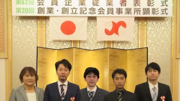 ㈱庄内クリエート工業のHさんが、10年以上の代表として賞状を受け取り、その長年の勤務と会社への貢献が称えられました。