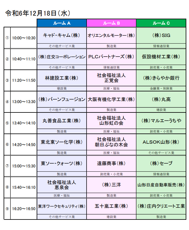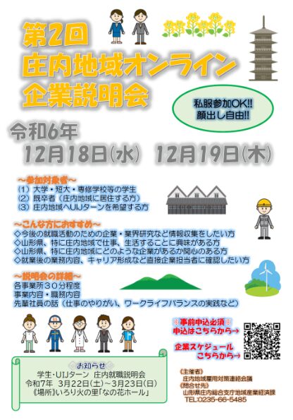 当社は、令和6年12月18日(水曜日)、12月19日(木曜日)に開催される「庄内地域オンライン企業説明会」に参加いたします。